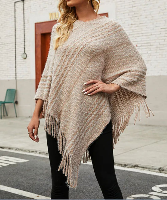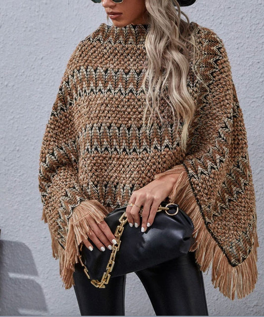 - Le poncho à franges doit se draper confortablement sur les épaules et le torse.