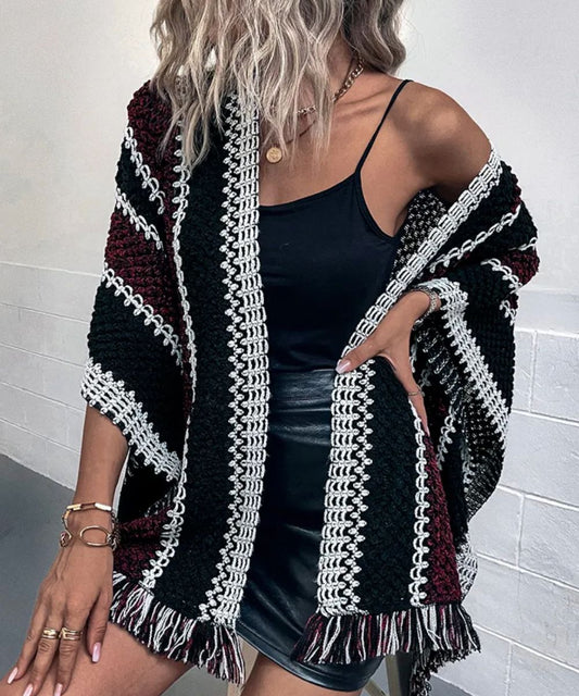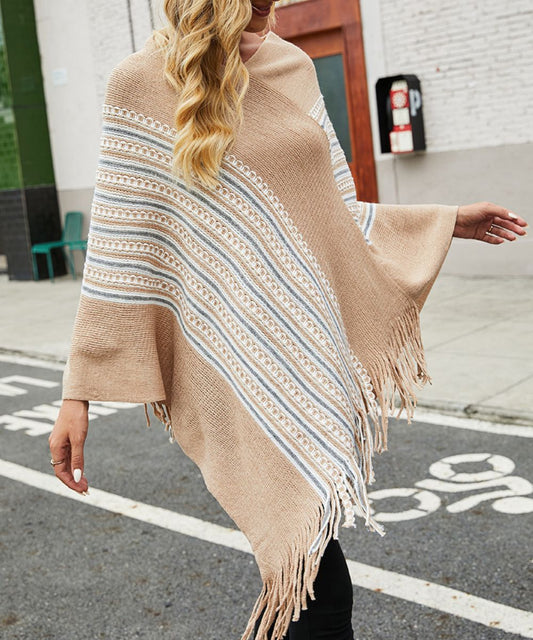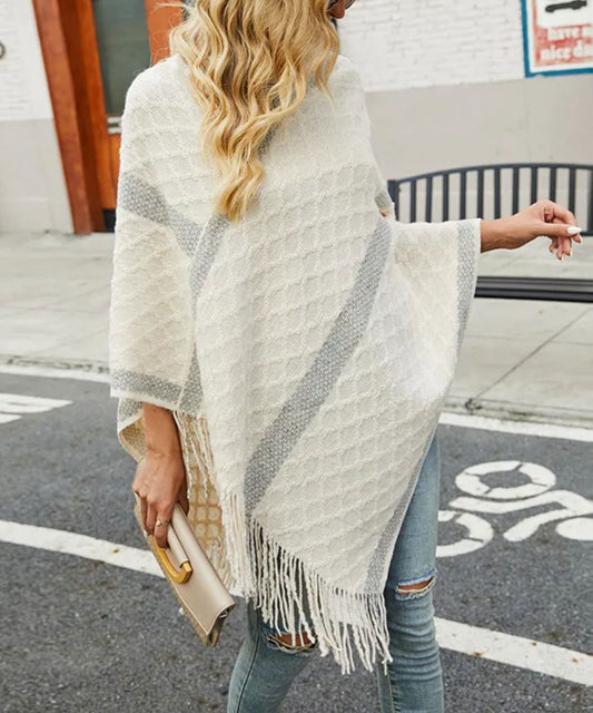 - Le poncho à franges doit se draper confortablement sur les épaules et le torse.